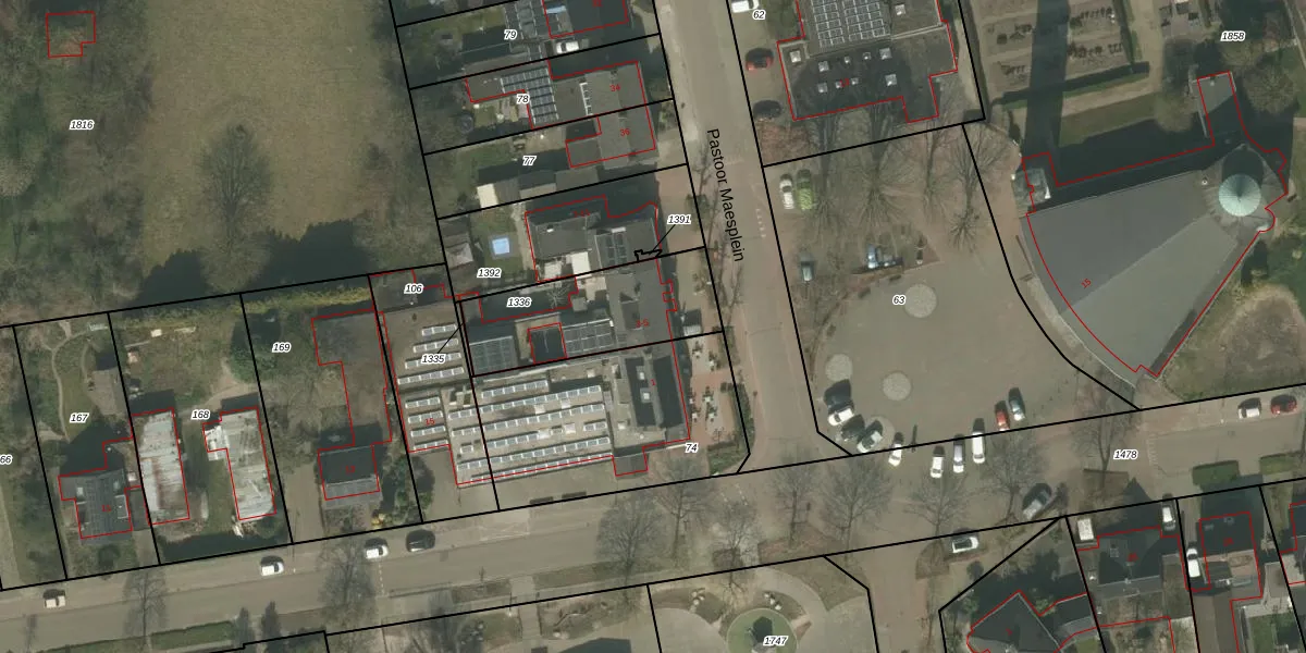 Het perceel waarop Pastoor Maesplein 3 staat heeft een oppervlakte van 487 m². Dit is een groot perceel. De perceeloppervlakte wordt geregistreerd door het Kadaster. Gedetailleerde informatie over de maten van dit perceel kunt u vinden in het rapport Kadastrale kaart met maatvoering van Pastoor Maesplein 3.