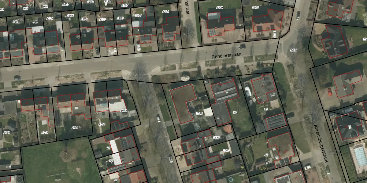 Rendierenlaan 7 is gelegen op kadastraal perceel NDW00R1532. Deze kadastrale aanduiding is uniek en wordt gebruikt door het Kadaster om eigendomsrechten en andere zakelijke rechten vast te leggen. Het perceel maakt onderdeel uit van de kadastrale gemeente Nederweert.