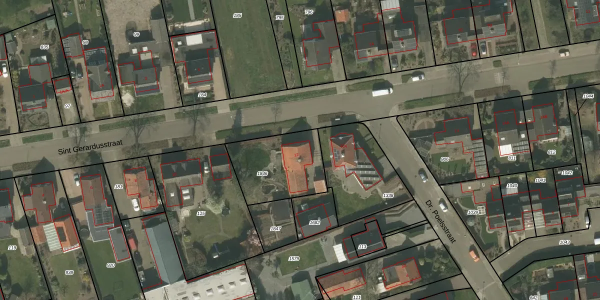 Sint Gerardusstraat 12 is gelegen op kadastraal perceel NDW00R1846. Deze kadastrale aanduiding is uniek en wordt gebruikt door het Kadaster om eigendomsrechten en andere zakelijke rechten vast te leggen. Het perceel maakt onderdeel uit van de kadastrale gemeente Nederweert.