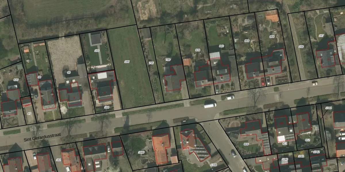 Sint Gerardusstraat 7 is gelegen op kadastraal perceel NDW00R796. Deze kadastrale aanduiding is uniek en wordt gebruikt door het Kadaster om eigendomsrechten en andere zakelijke rechten vast te leggen. Het perceel maakt onderdeel uit van de kadastrale gemeente Nederweert.