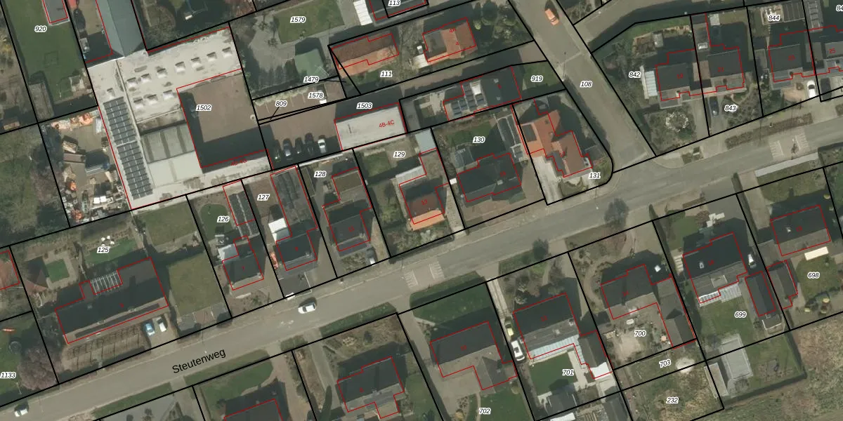 Steutenweg 13 is gelegen op kadastraal perceel NDW00R129. Deze kadastrale aanduiding is uniek en wordt gebruikt door het Kadaster om eigendomsrechten en andere zakelijke rechten vast te leggen. Het perceel maakt onderdeel uit van de kadastrale gemeente Nederweert.