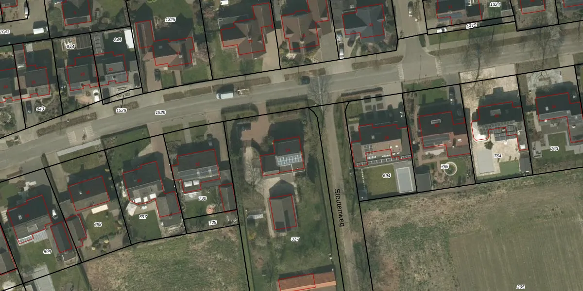Steutenweg 24 is gelegen op kadastraal perceel NDW00R377. Deze kadastrale aanduiding is uniek en wordt gebruikt door het Kadaster om eigendomsrechten en andere zakelijke rechten vast te leggen. Het perceel maakt onderdeel uit van de kadastrale gemeente Nederweert.