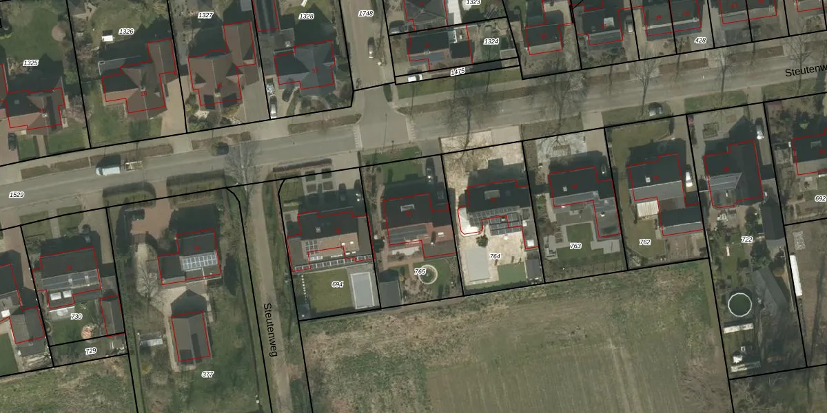 Het perceel waarop Steutenweg 30 staat heeft een oppervlakte van 697 m². Dit is een groot perceel. De perceeloppervlakte wordt geregistreerd door het Kadaster. Gedetailleerde informatie over de maten van dit perceel kunt u vinden in het rapport Kadastrale kaart met maatvoering van Steutenweg 30.
