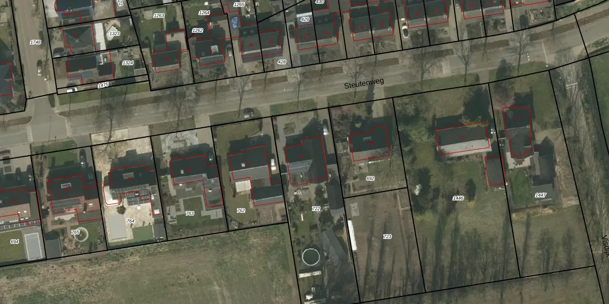 Het perceel waarop Steutenweg 38 staat heeft een oppervlakte van 1245 m². Dit is een zeer groot perceel. De perceeloppervlakte wordt geregistreerd door het Kadaster. Gedetailleerde informatie over de maten van dit perceel kunt u vinden in het rapport Kadastrale kaart met maatvoering van Steutenweg 38.