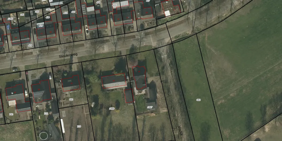 Steutenweg 44 is gelegen op kadastraal perceel NDW00R1447. Deze kadastrale aanduiding is uniek en wordt gebruikt door het Kadaster om eigendomsrechten en andere zakelijke rechten vast te leggen. Het perceel maakt onderdeel uit van de kadastrale gemeente Nederweert.