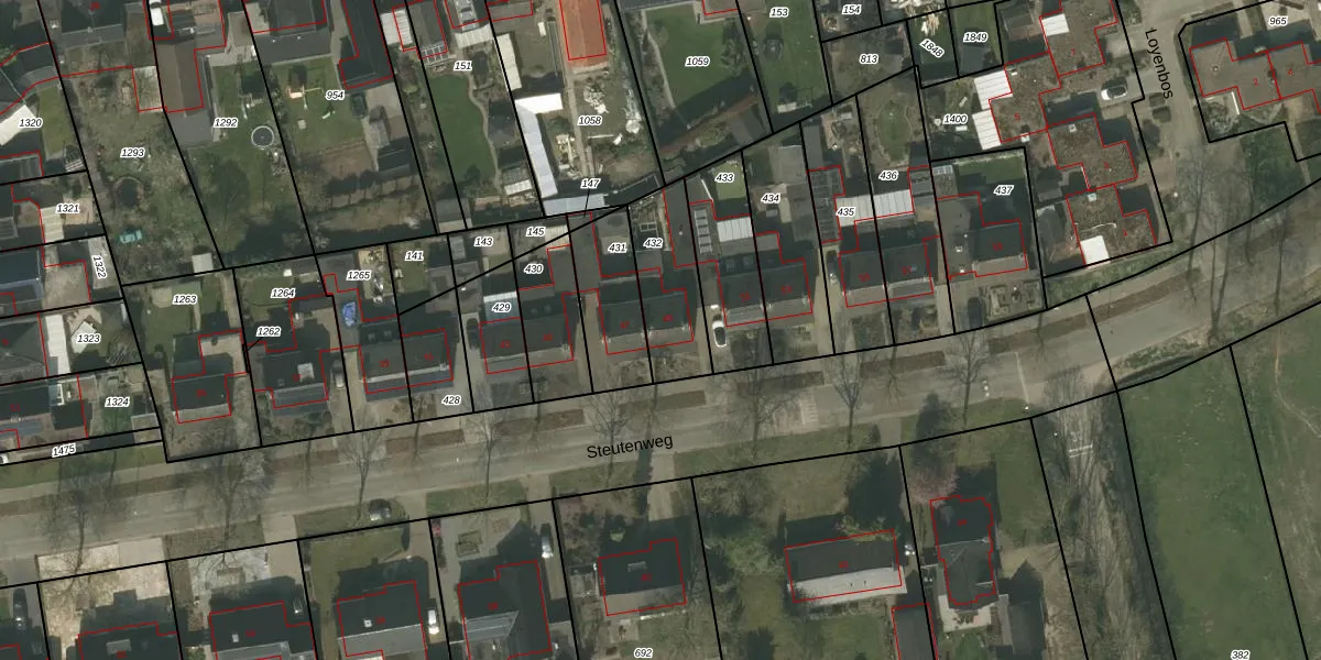 Steutenweg 49 is gelegen op kadastraal perceel NDW00R432. Deze kadastrale aanduiding is uniek en wordt gebruikt door het Kadaster om eigendomsrechten en andere zakelijke rechten vast te leggen. Het perceel maakt onderdeel uit van de kadastrale gemeente Nederweert.
