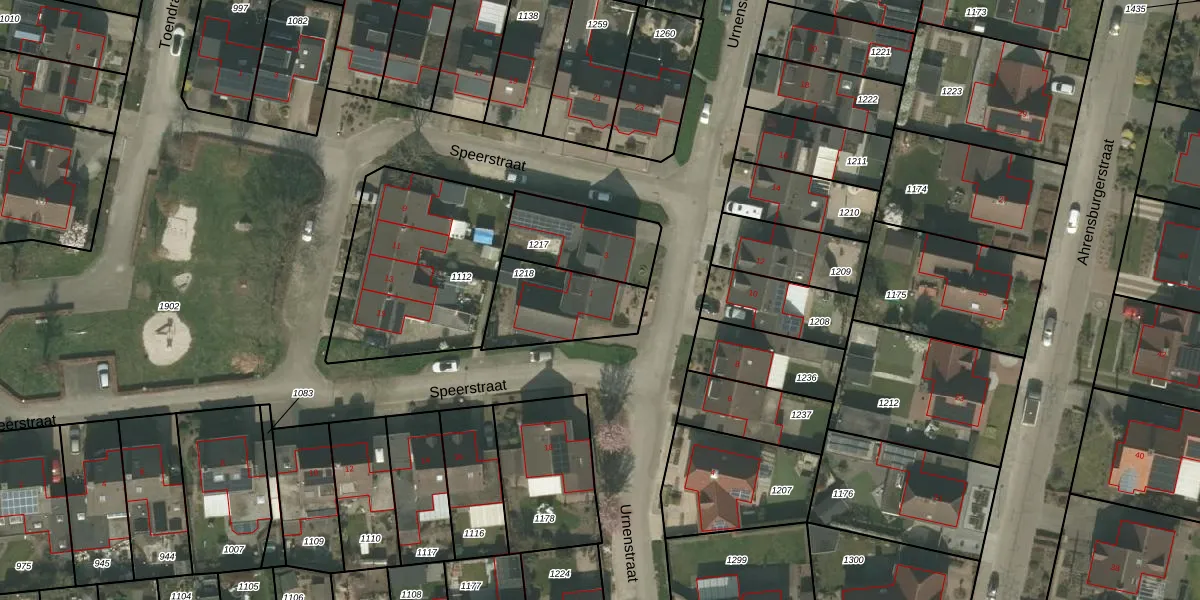 Urnenstraat 1 is gelegen op kadastraal perceel NDW00R1218. Deze kadastrale aanduiding is uniek en wordt gebruikt door het Kadaster om eigendomsrechten en andere zakelijke rechten vast te leggen. Het perceel maakt onderdeel uit van de kadastrale gemeente Nederweert.