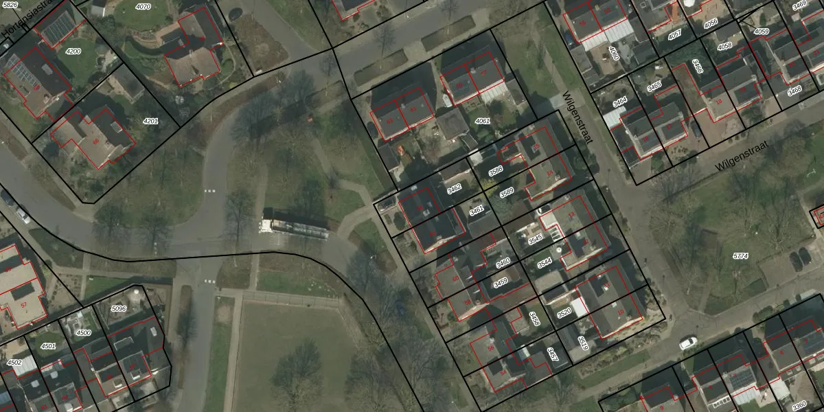Gebruik de zoekbalk of klik op een perceel voor informatie over de adressen binnen dit perceel.