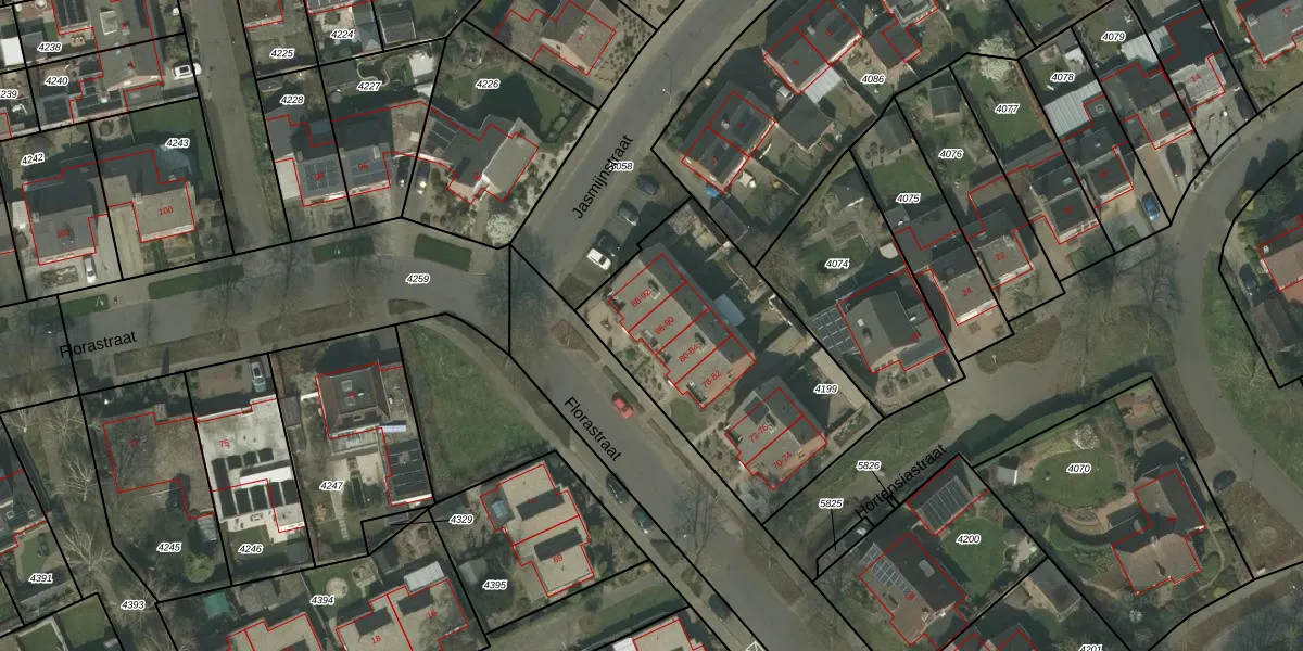 Florastraat 86 is gelegen op kadastraal perceel NDW00A4199. Deze kadastrale aanduiding is uniek en wordt gebruikt door het Kadaster om eigendomsrechten en andere zakelijke rechten vast te leggen. Het perceel maakt onderdeel uit van de kadastrale gemeente Nederweert.