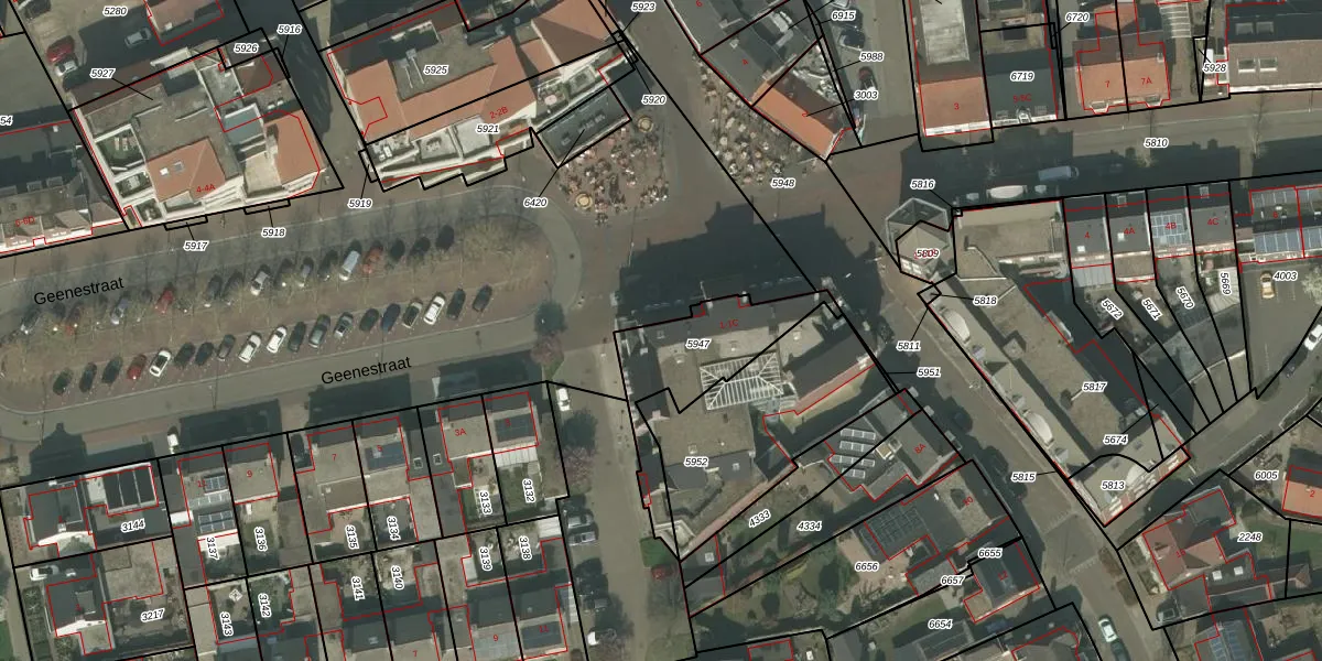 Het perceel waarop Geenestraat 1-A-2 staat heeft een oppervlakte van 365 m². Dit is een groot perceel. De perceeloppervlakte wordt geregistreerd door het Kadaster. Gedetailleerde informatie over de maten van dit perceel kunt u vinden in het rapport Kadastrale kaart met maatvoering van Geenestraat 1-A-2.