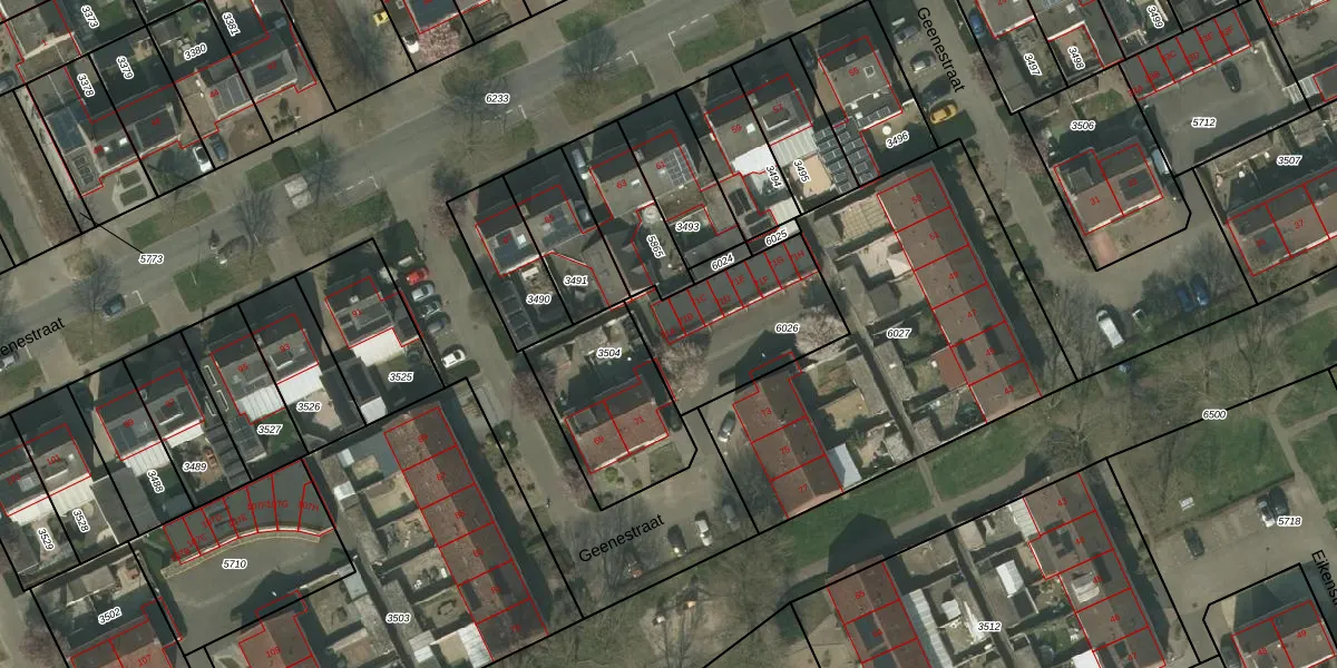 Het perceel waarop Geenestraat 71-A staat heeft een oppervlakte van 488 m². Dit is een groot perceel. De perceeloppervlakte wordt geregistreerd door het Kadaster. Gedetailleerde informatie over de maten van dit perceel kunt u vinden in het rapport Kadastrale kaart met maatvoering van Geenestraat 71-A.