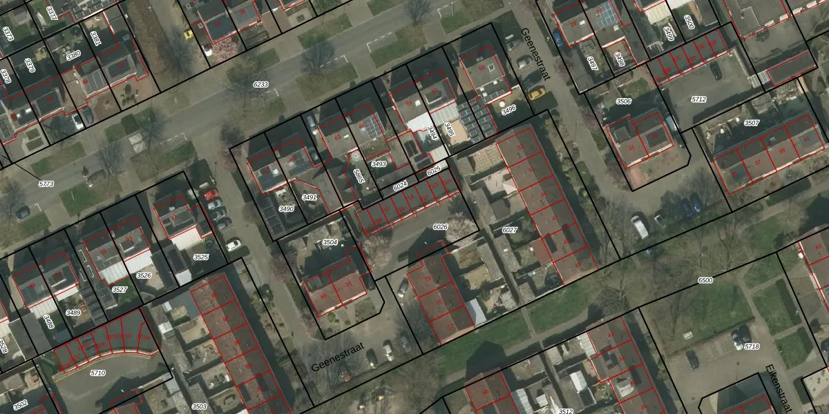 Het perceel waarop Geenestraat 71-E staat heeft een oppervlakte van 488 m². Dit is een groot perceel. De perceeloppervlakte wordt geregistreerd door het Kadaster. Gedetailleerde informatie over de maten van dit perceel kunt u vinden in het rapport Kadastrale kaart met maatvoering van Geenestraat 71-E.