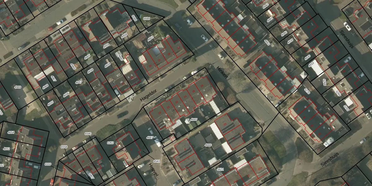 Het perceel waarop Hageldor 24 staat heeft een oppervlakte van 952 m². Dit is een groot perceel. De perceeloppervlakte wordt geregistreerd door het Kadaster. Gedetailleerde informatie over de maten van dit perceel kunt u vinden in het rapport Kadastrale kaart met maatvoering van Hageldor 24.