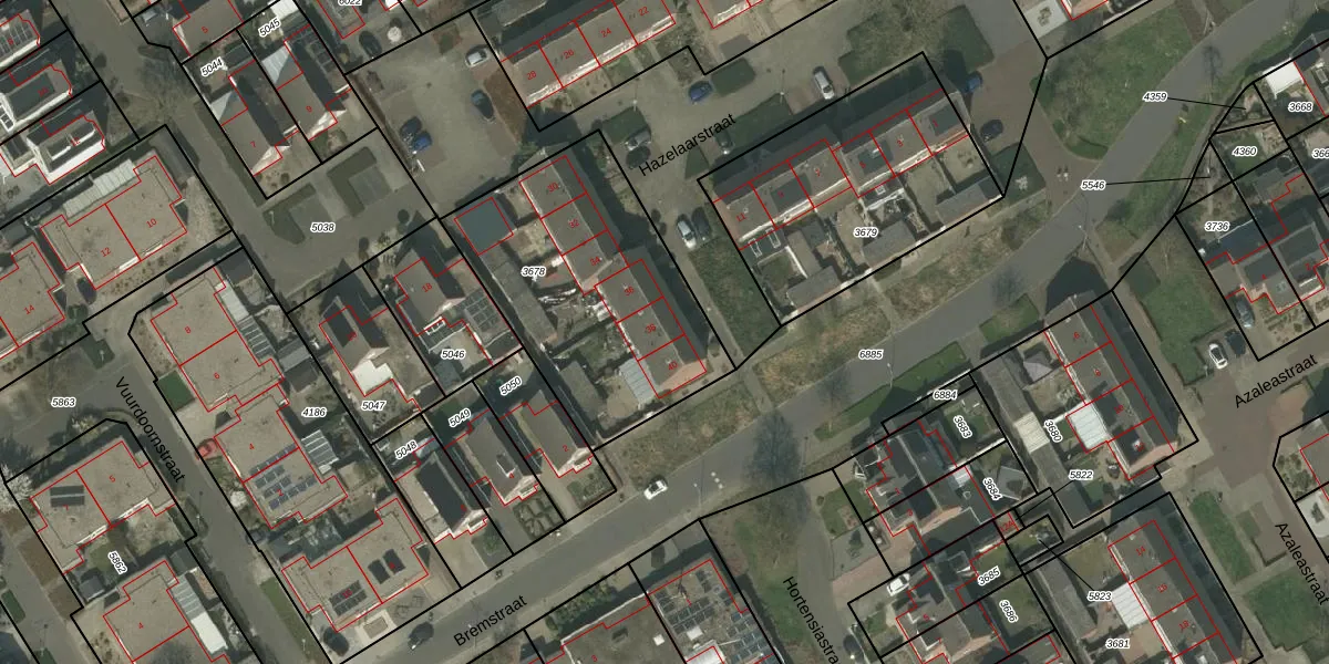 Het perceel waarop Hazelaarstraat 38 staat heeft een oppervlakte van 1090 m². Dit is een zeer groot perceel. De perceeloppervlakte wordt geregistreerd door het Kadaster. Gedetailleerde informatie over de maten van dit perceel kunt u vinden in het rapport Kadastrale kaart met maatvoering van Hazelaarstraat 38.