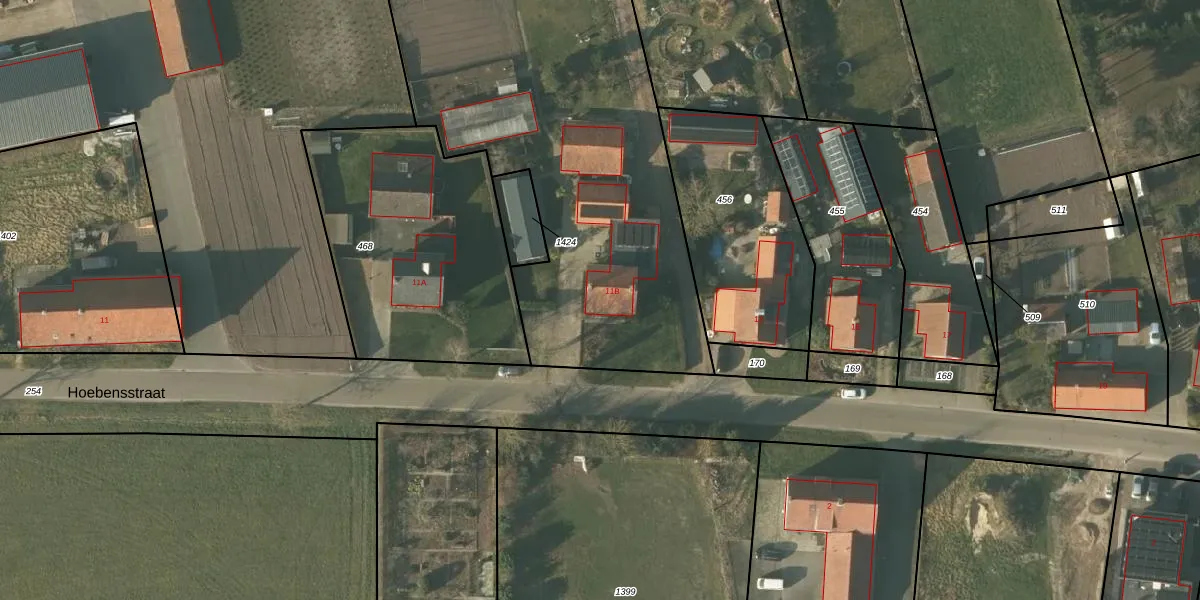 Het perceel waarop Hoebensstraat 11-B staat heeft een oppervlakte van 5466 m². Dit is een zeer groot perceel. De perceeloppervlakte wordt geregistreerd door het Kadaster. Gedetailleerde informatie over de maten van dit perceel kunt u vinden in het rapport Kadastrale kaart met maatvoering van Hoebensstraat 11-B.