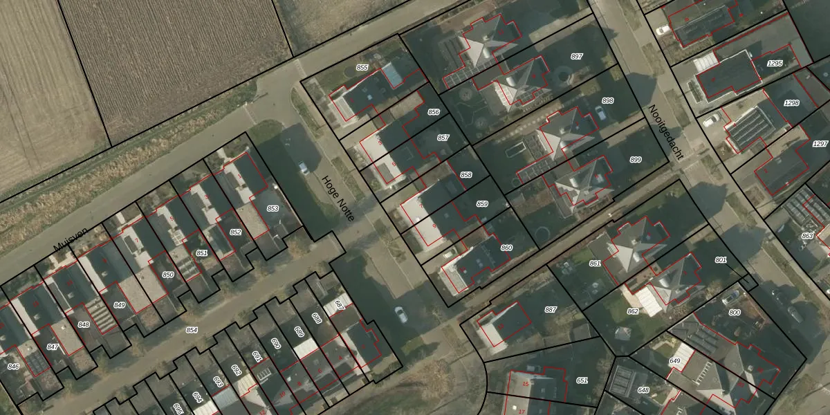 Het perceel waarop Hoge Notte 7 staat heeft een oppervlakte van 235 m². Dit is een middelgroot perceel. De perceeloppervlakte wordt geregistreerd door het Kadaster. Gedetailleerde informatie over de maten van dit perceel kunt u vinden in het rapport Kadastrale kaart met maatvoering van Hoge Notte 7.
