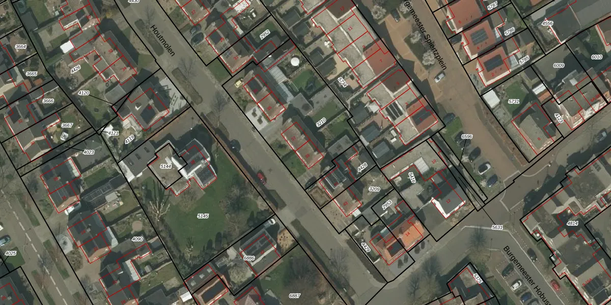 Het perceel waarop Houtmolen 39 staat heeft een oppervlakte van 1120 m². Dit is een zeer groot perceel. De perceeloppervlakte wordt geregistreerd door het Kadaster. Gedetailleerde informatie over de maten van dit perceel kunt u vinden in het rapport Kadastrale kaart met maatvoering van Houtmolen 39.