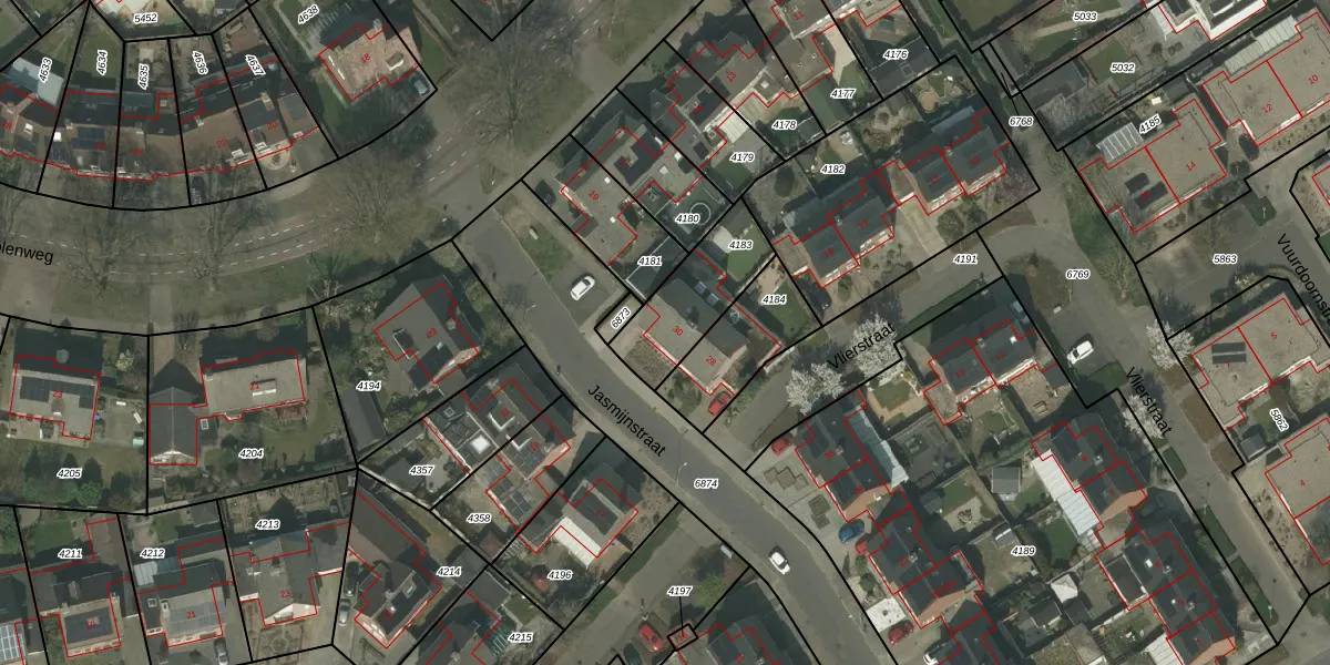 Het perceel waarop Jasmijnstraat 30 staat heeft een oppervlakte van 281 m². Dit is een middelgroot perceel. De perceeloppervlakte wordt geregistreerd door het Kadaster. Gedetailleerde informatie over de maten van dit perceel kunt u vinden in het rapport Kadastrale kaart met maatvoering van Jasmijnstraat 30.