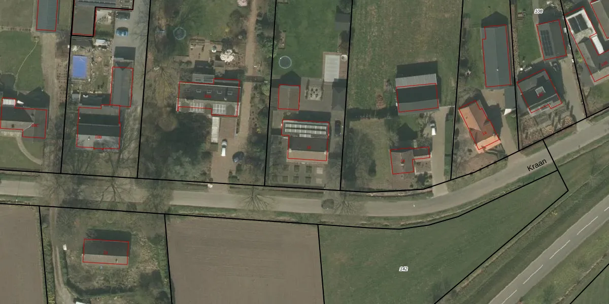Het perceel waarop Kraan 18 staat heeft een oppervlakte van 3983 m². Dit is een zeer groot perceel. De perceeloppervlakte wordt geregistreerd door het Kadaster. Gedetailleerde informatie over de maten van dit perceel kunt u vinden in het rapport Kadastrale kaart met maatvoering van Kraan 18.