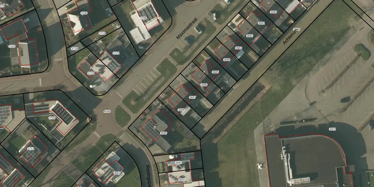 Maximastraat 19 is gelegen op kadastraal perceel NDW00L3687. Deze kadastrale aanduiding is uniek en wordt gebruikt door het Kadaster om eigendomsrechten en andere zakelijke rechten vast te leggen. Het perceel maakt onderdeel uit van de kadastrale gemeente Nederweert.