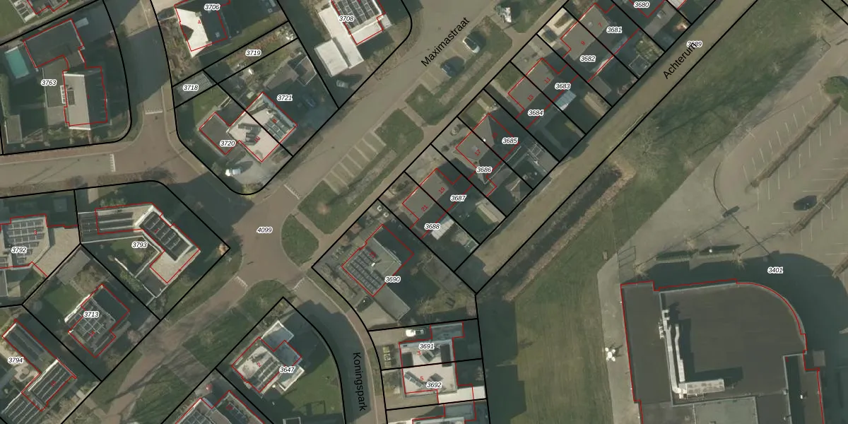 Maximastraat 21 is gelegen op kadastraal perceel NDW00L3688. Deze kadastrale aanduiding is uniek en wordt gebruikt door het Kadaster om eigendomsrechten en andere zakelijke rechten vast te leggen. Het perceel maakt onderdeel uit van de kadastrale gemeente Nederweert.