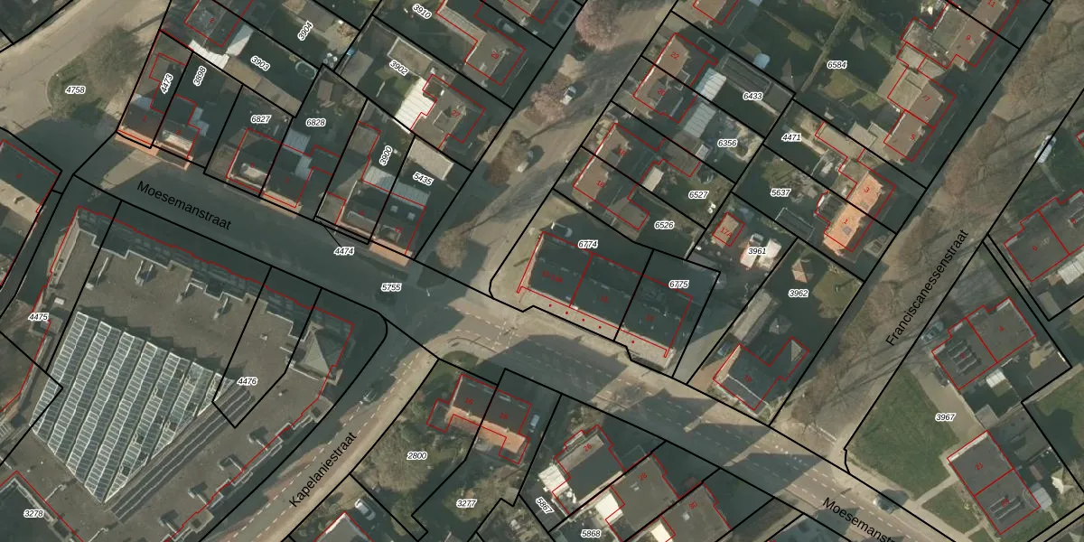 Moesemanstraat 13-A is gelegen op kadastraal perceel NDW00A6774. Deze kadastrale aanduiding is uniek en wordt gebruikt door het Kadaster om eigendomsrechten en andere zakelijke rechten vast te leggen. Het perceel maakt onderdeel uit van de kadastrale gemeente Nederweert.