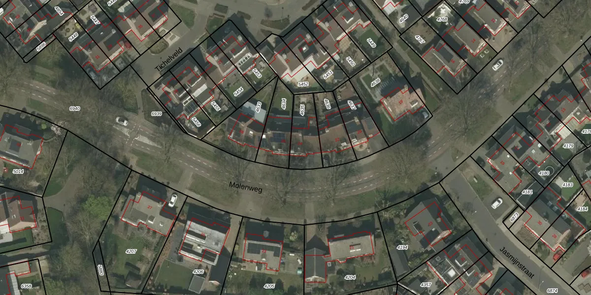 Het perceel waarop Molenweg 24 staat heeft een oppervlakte van 233 m². Dit is een middelgroot perceel. De perceeloppervlakte wordt geregistreerd door het Kadaster. Gedetailleerde informatie over de maten van dit perceel kunt u vinden in het rapport Kadastrale kaart met maatvoering van Molenweg 24.