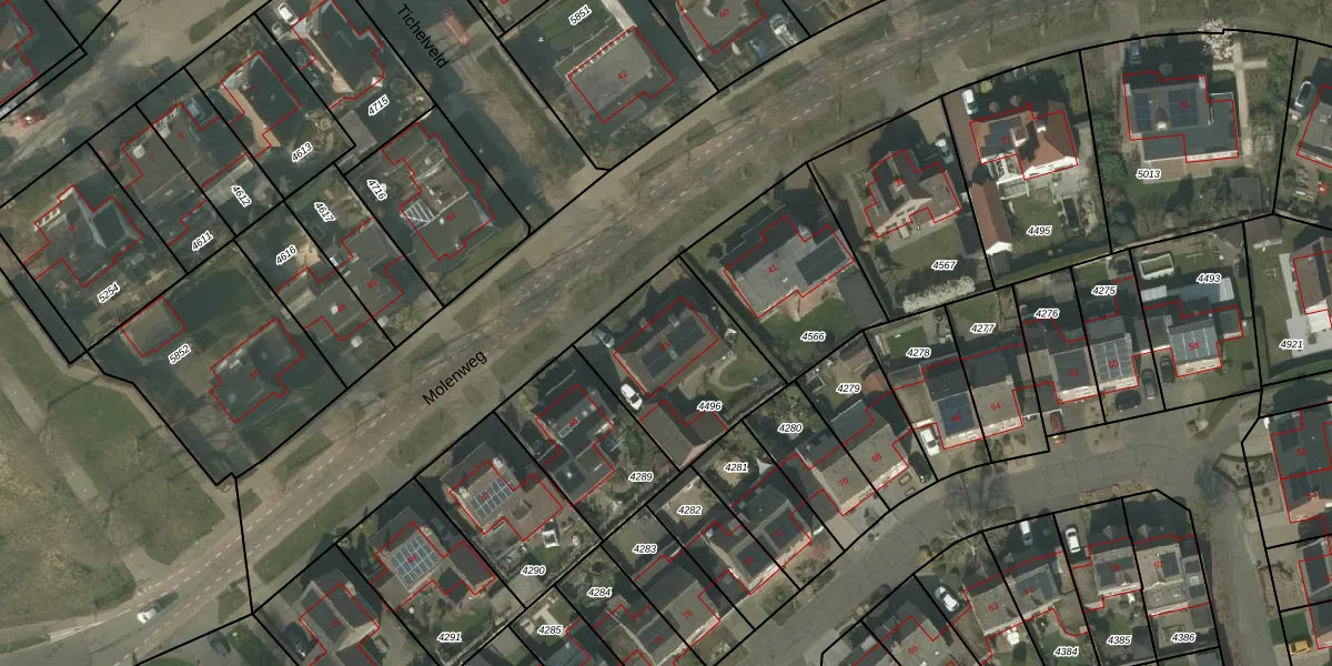 Het perceel waarop Molenweg 43 staat heeft een oppervlakte van 525 m². Dit is een groot perceel. De perceeloppervlakte wordt geregistreerd door het Kadaster. Gedetailleerde informatie over de maten van dit perceel kunt u vinden in het rapport Kadastrale kaart met maatvoering van Molenweg 43.