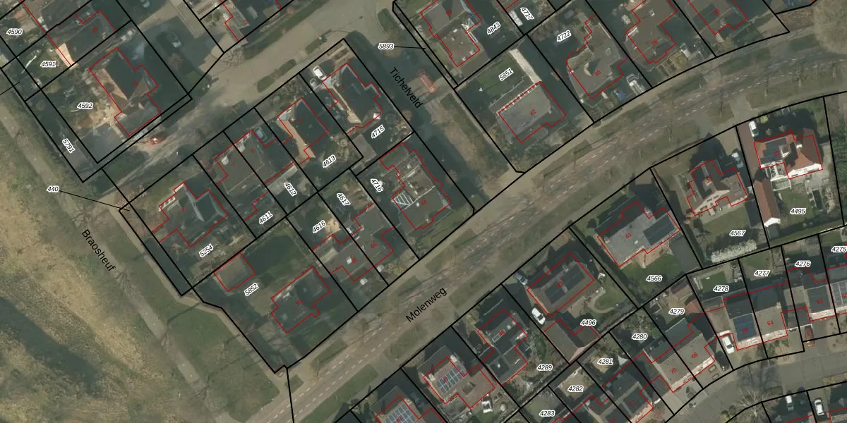 Het perceel waarop Molenweg 44 staat heeft een oppervlakte van 429 m². Dit is een groot perceel. De perceeloppervlakte wordt geregistreerd door het Kadaster. Gedetailleerde informatie over de maten van dit perceel kunt u vinden in het rapport Kadastrale kaart met maatvoering van Molenweg 44.
