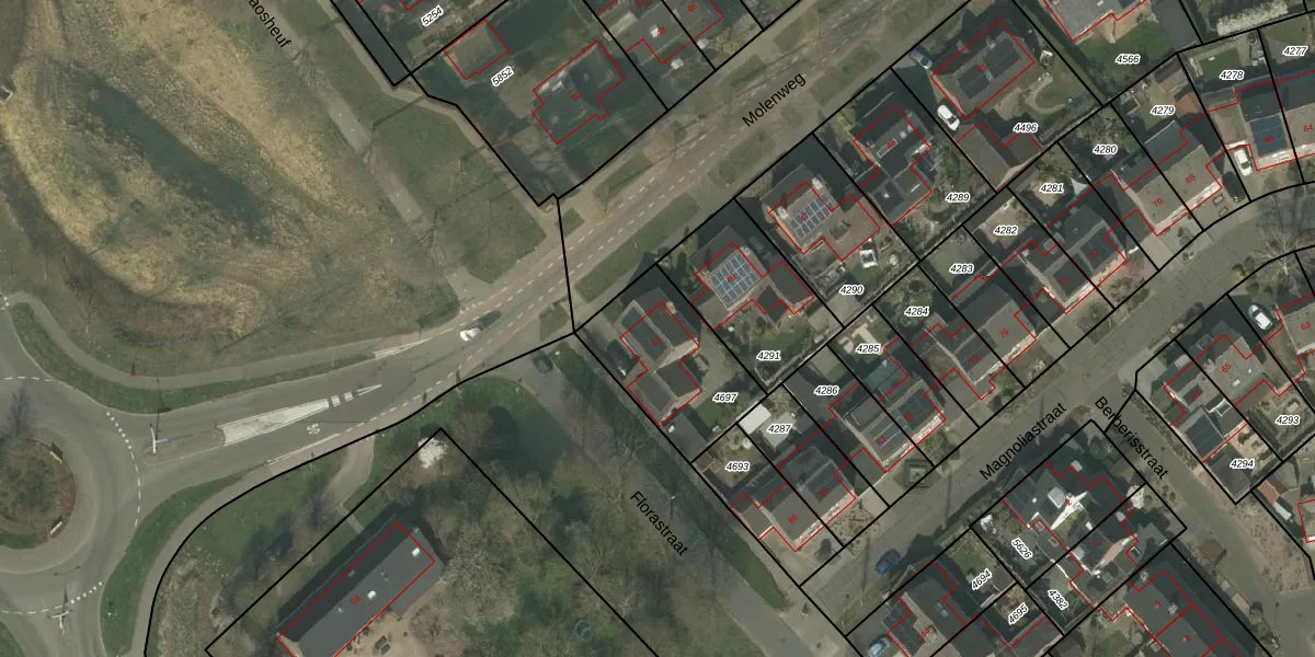 Het perceel waarop Molenweg 51 staat heeft een oppervlakte van 419 m². Dit is een groot perceel. De perceeloppervlakte wordt geregistreerd door het Kadaster. Gedetailleerde informatie over de maten van dit perceel kunt u vinden in het rapport Kadastrale kaart met maatvoering van Molenweg 51.