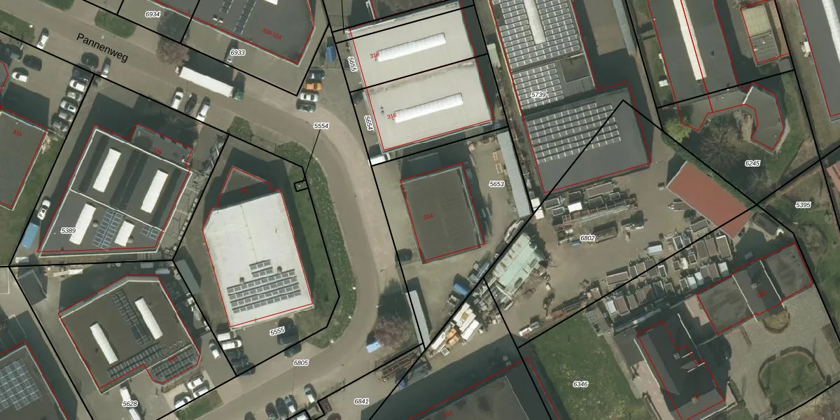 Pannenweg 314 is gelegen op kadastraal perceel NDW00A5653. Deze kadastrale aanduiding is uniek en wordt gebruikt door het Kadaster om eigendomsrechten en andere zakelijke rechten vast te leggen. Het perceel maakt onderdeel uit van de kadastrale gemeente Nederweert.