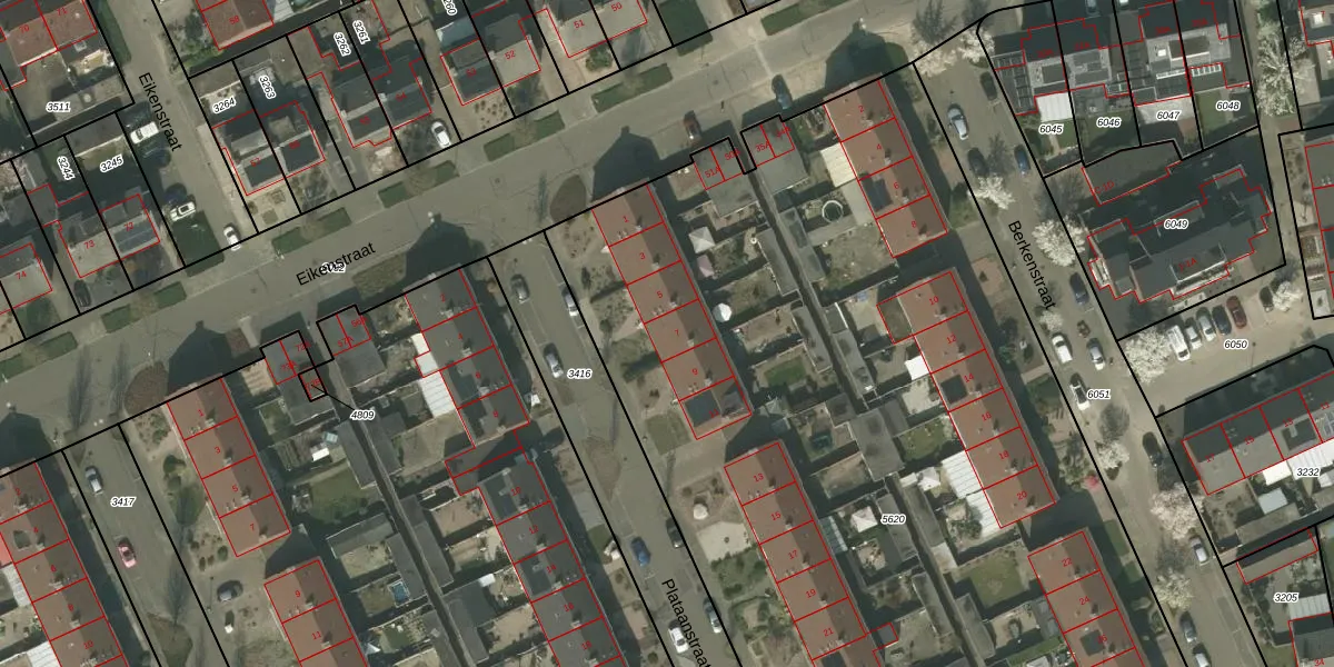 Het perceel waarop Plataanstraat 7 staat heeft een oppervlakte van 6845 m². Dit is een zeer groot perceel. De perceeloppervlakte wordt geregistreerd door het Kadaster. Gedetailleerde informatie over de maten van dit perceel kunt u vinden in het rapport Kadastrale kaart met maatvoering van Plataanstraat 7.
