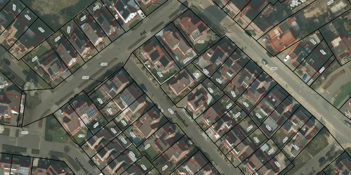 Het perceel waarop Poppelkuil 16 staat heeft een oppervlakte van 304 m². Dit is een groot perceel. De perceeloppervlakte wordt geregistreerd door het Kadaster. Gedetailleerde informatie over de maten van dit perceel kunt u vinden in het rapport Kadastrale kaart met maatvoering van Poppelkuil 16.