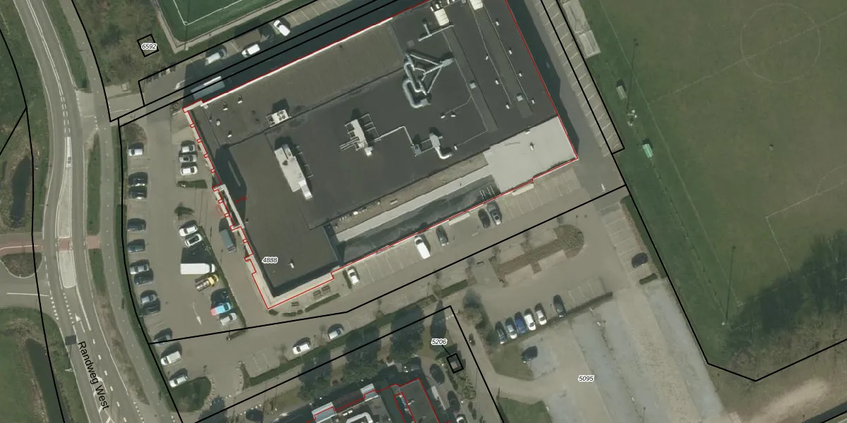 Het perceel waarop Randweg West 4-B staat heeft een oppervlakte van 6771 m². Dit is een zeer groot perceel. De perceeloppervlakte wordt geregistreerd door het Kadaster. Gedetailleerde informatie over de maten van dit perceel kunt u vinden in het rapport Kadastrale kaart met maatvoering van Randweg West 4-B.