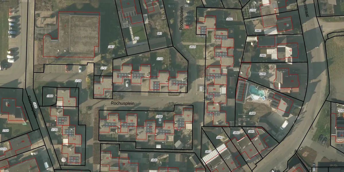 Het perceel waarop Rochusplein 11 staat heeft een oppervlakte van 1015 m². Dit is een zeer groot perceel. De perceeloppervlakte wordt geregistreerd door het Kadaster. Gedetailleerde informatie over de maten van dit perceel kunt u vinden in het rapport Kadastrale kaart met maatvoering van Rochusplein 11.