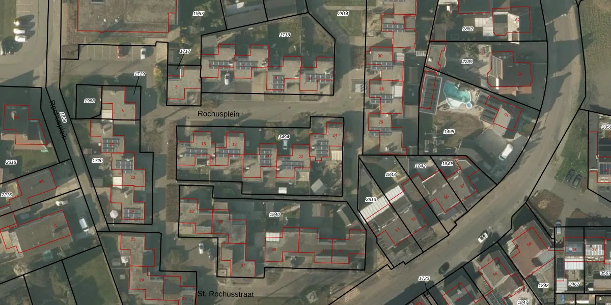 Het perceel waarop Rochusplein 22 staat heeft een oppervlakte van 1145 m². Dit is een zeer groot perceel. De perceeloppervlakte wordt geregistreerd door het Kadaster. Gedetailleerde informatie over de maten van dit perceel kunt u vinden in het rapport Kadastrale kaart met maatvoering van Rochusplein 22.