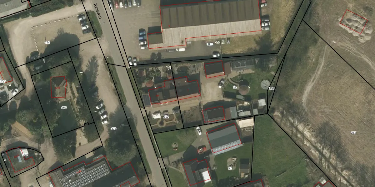 Het perceel waarop Roeven 7 staat heeft een oppervlakte van 1877 m². Dit is een zeer groot perceel. De perceeloppervlakte wordt geregistreerd door het Kadaster. Gedetailleerde informatie over de maten van dit perceel kunt u vinden in het rapport Kadastrale kaart met maatvoering van Roeven 7.