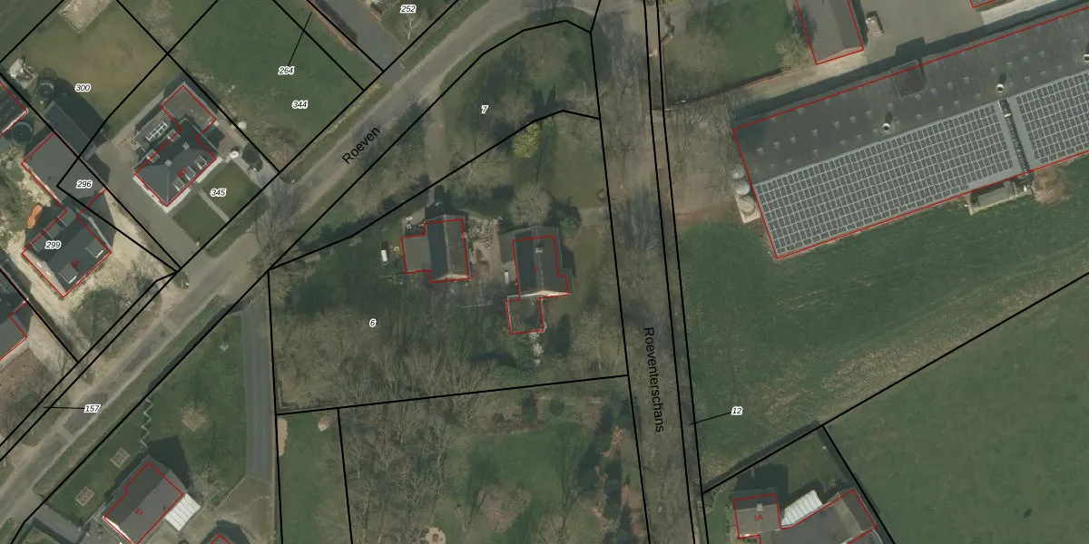 Het perceel waarop Roeventerschans 2 staat heeft een oppervlakte van 2484 m². Dit is een zeer groot perceel. De perceeloppervlakte wordt geregistreerd door het Kadaster. Gedetailleerde informatie over de maten van dit perceel kunt u vinden in het rapport Kadastrale kaart met maatvoering van Roeventerschans 2.