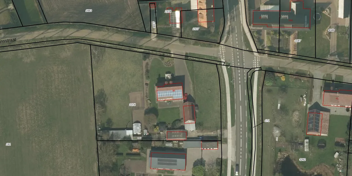 Schansstraat 38 is gelegen op kadastraal perceel NDW00L2374. Deze kadastrale aanduiding is uniek en wordt gebruikt door het Kadaster om eigendomsrechten en andere zakelijke rechten vast te leggen. Het perceel maakt onderdeel uit van de kadastrale gemeente Nederweert.