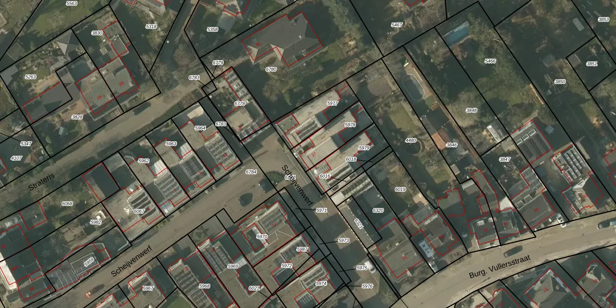 Scheijvenwerf 17 is gelegen op kadastraal perceel NDW00A5978. Deze kadastrale aanduiding is uniek en wordt gebruikt door het Kadaster om eigendomsrechten en andere zakelijke rechten vast te leggen. Het perceel maakt onderdeel uit van de kadastrale gemeente Nederweert.