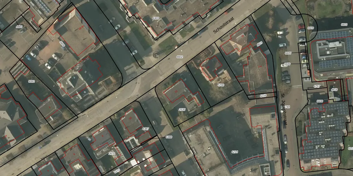 Schoolstraat 12 is gelegen op kadastraal perceel NDW00A2535. Deze kadastrale aanduiding is uniek en wordt gebruikt door het Kadaster om eigendomsrechten en andere zakelijke rechten vast te leggen. Het perceel maakt onderdeel uit van de kadastrale gemeente Nederweert.