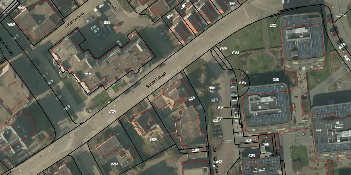 Het perceel waarop Schoolstraat 16 staat heeft een oppervlakte van 935 m². Dit is een groot perceel. De perceeloppervlakte wordt geregistreerd door het Kadaster. Gedetailleerde informatie over de maten van dit perceel kunt u vinden in het rapport Kadastrale kaart met maatvoering van Schoolstraat 16.
