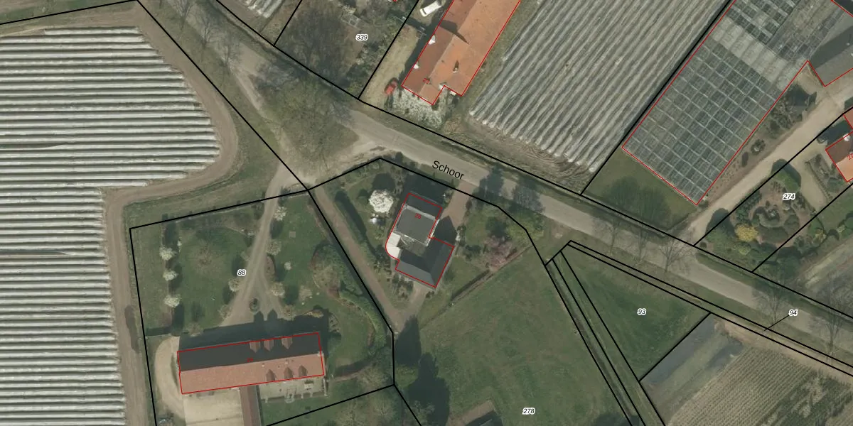 Het perceel waarop Schoor 28 staat heeft een oppervlakte van 3211 m². Dit is een zeer groot perceel. De perceeloppervlakte wordt geregistreerd door het Kadaster. Gedetailleerde informatie over de maten van dit perceel kunt u vinden in het rapport Kadastrale kaart met maatvoering van Schoor 28.