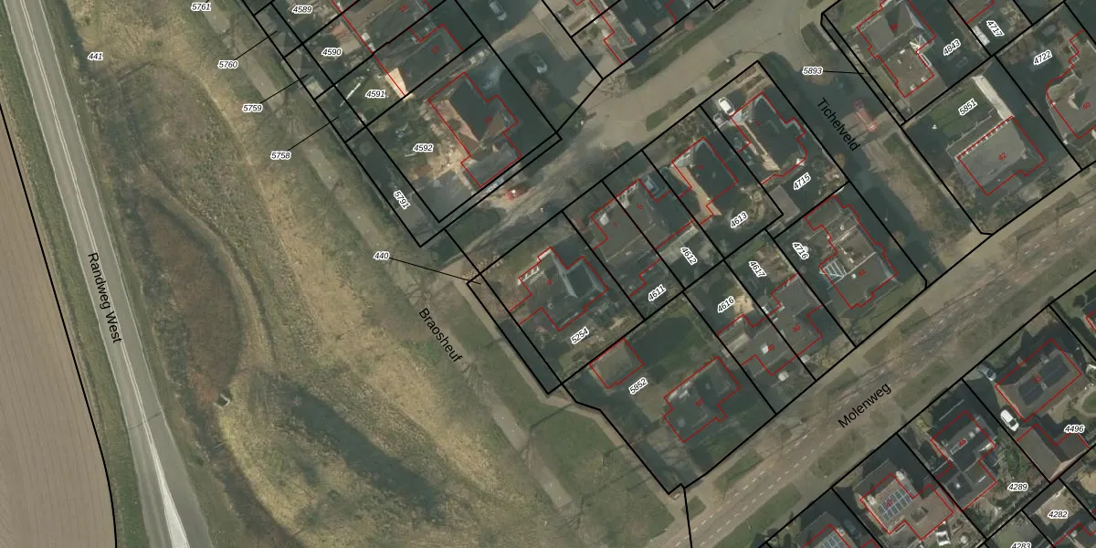 Het perceel waarop het adres ligt is NDW00-A-5254. De afkorting 'NDW00' staat voor kadastrale gemeente Nederweert. De gemiddelde perceelgrootte in Nederweert is 7169,77 m². Dit perceel is kleiner: de perceeloppervlakte bedraagt 475 m². De grootste perceeloppervlakte in de kadastrale gemeente is 3,07 km². De kleinste oppervlakte bedraagt 0 m². Dit is het enige adres dat aanwezig is op het perceel. De huidige grenzen van het perceel zijn digitaal in de Basisregistratie Kadaster (BRK) geregistreerd op 18-12-2008.