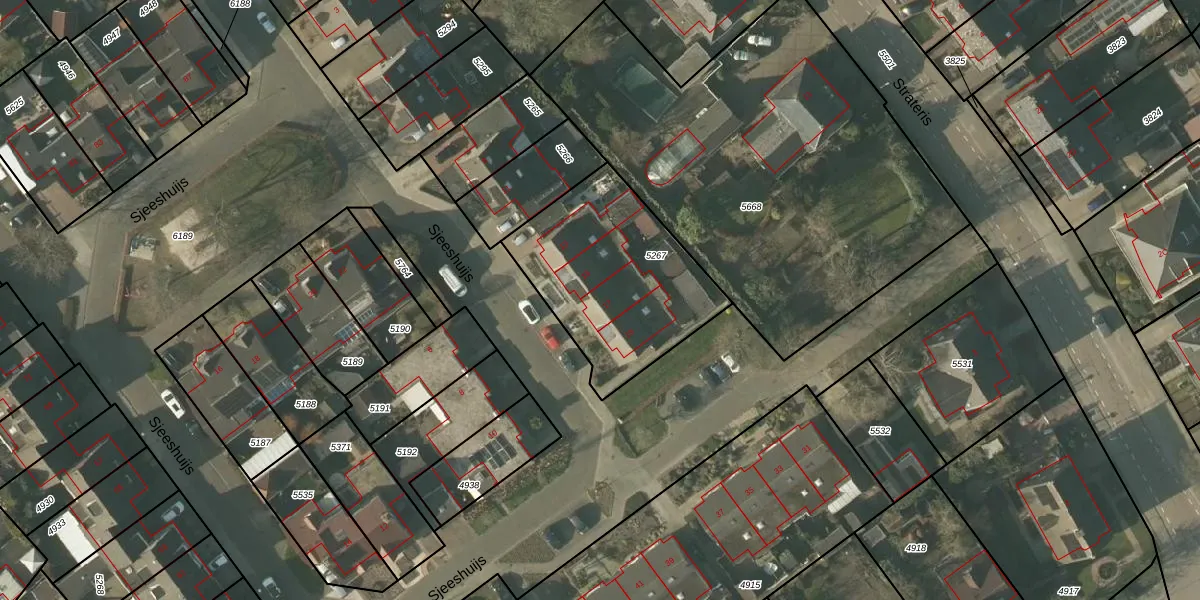 Het perceel waarop Sjeeshuijs 17 staat heeft een oppervlakte van 755 m². Dit is een groot perceel. De perceeloppervlakte wordt geregistreerd door het Kadaster. Gedetailleerde informatie over de maten van dit perceel kunt u vinden in het rapport Kadastrale kaart met maatvoering van Sjeeshuijs 17.