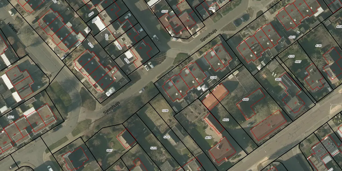 Het perceel waarop Sjeeshuijs 57 staat heeft een oppervlakte van 1060 m². Dit is een zeer groot perceel. De perceeloppervlakte wordt geregistreerd door het Kadaster. Gedetailleerde informatie over de maten van dit perceel kunt u vinden in het rapport Kadastrale kaart met maatvoering van Sjeeshuijs 57.