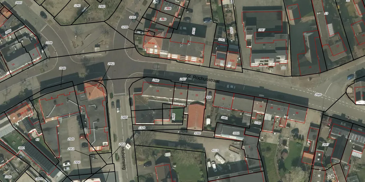St. Rochusstraat 18 is gelegen op kadastraal perceel NDW00L2487. Deze kadastrale aanduiding is uniek en wordt gebruikt door het Kadaster om eigendomsrechten en andere zakelijke rechten vast te leggen. Het perceel maakt onderdeel uit van de kadastrale gemeente Nederweert.