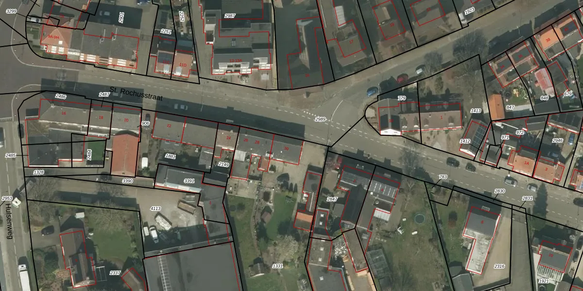 Het perceel waarop St. Rochusstraat 30 staat heeft een oppervlakte van 2145 m². Dit is een zeer groot perceel. De perceeloppervlakte wordt geregistreerd door het Kadaster. Gedetailleerde informatie over de maten van dit perceel kunt u vinden in het rapport Kadastrale kaart met maatvoering van St. Rochusstraat 30.