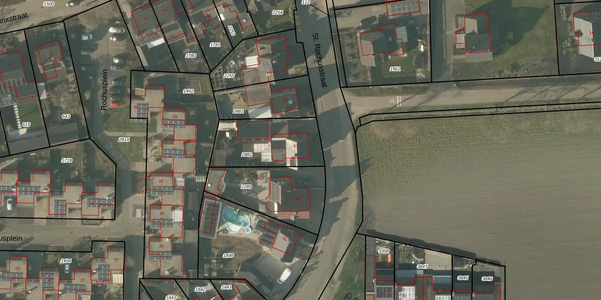 Gebruik de zoekbalk of klik op een perceel voor informatie over de adressen binnen dit perceel.