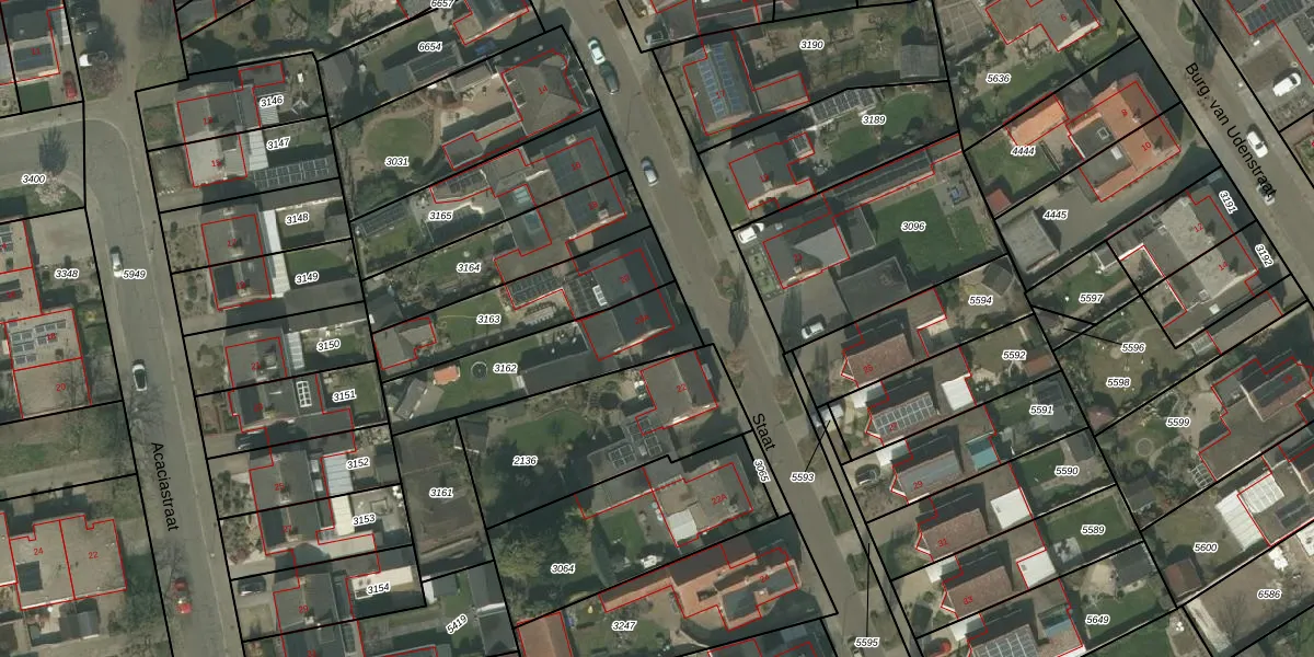 Gebruik de zoekbalk of klik op een perceel voor informatie over de adressen binnen dit perceel.